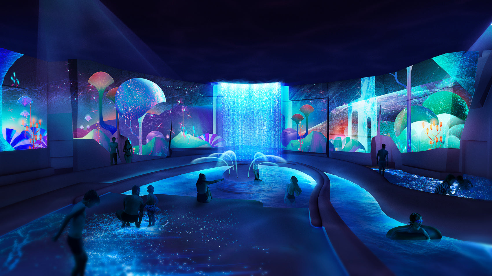 Les Abysses de Lumière, one of Aquascope’s three experiential spaces, will whisk visitors away into a spellbindingly immersive universe combining synchronized programming of video mapping, spatialized audio, lighting, interactivity and choreographed water effects.