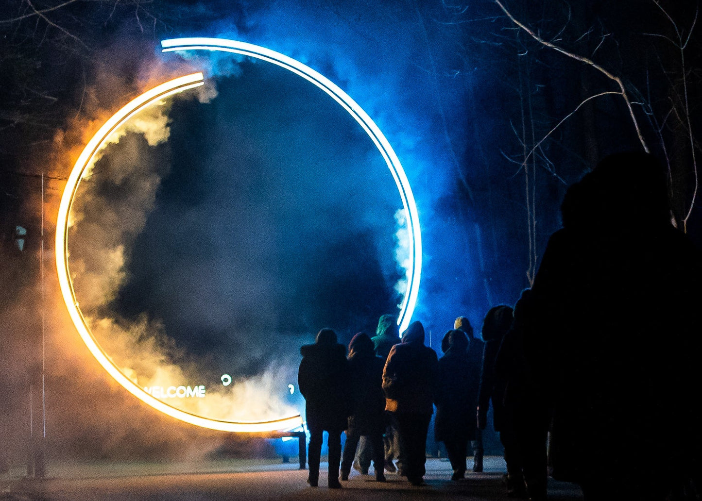 18 - A Striking Entrance - The Lumina Night Walks have a distinctive way to welcome guests on a journey: a dazzling arch shaped by the stories, symbols and unique characters of each location. With Onhwa’ Lumina, created in close collaboration with members of the Huron-Wendat community, the archway is inspired by the art of embroidery and represents the cycle of life.