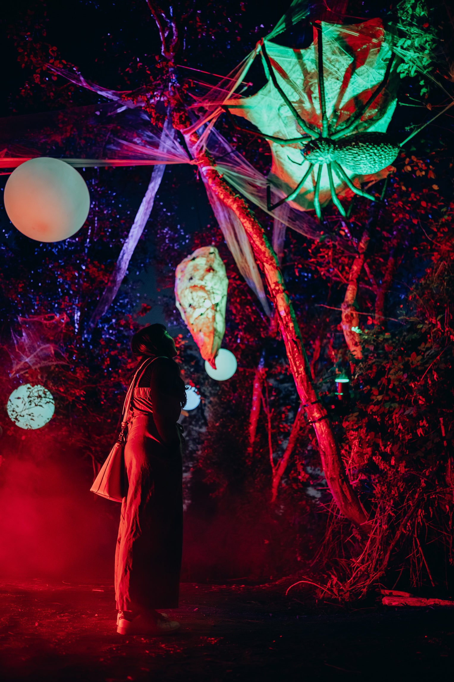 Inspiré des secrets qui surgissent la nuit, Forest of Shadows trace un chemin entre peur et curiosité. Tout au long du parcours, des installations multimédias trompent les sens, des sons étranges font écho dans l’obscurité et des projections transforment la forêt en paysage effrayant. Cette expérience immersive a été créée pour surprendre et captiver, sans effets choquants ou sanglants.