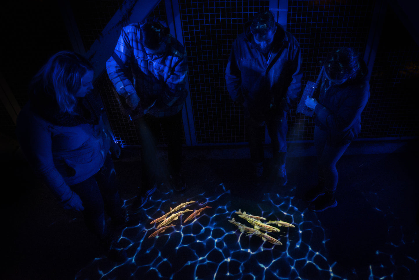 The group explores the park together using their tool kit. The operation is foolproof thanks to a wireless deployable system that turns the tools automatically on and off, triggering video content, special effects, music and voice over. With the tools uniquely activated at different spots across the park, participants work together to stage multimedia moments of discovery. From salmon swimming up the Rouge River to a submerged town of Lake Minnewanka, each moment is a combination of multimedia effects created by the tool kit.