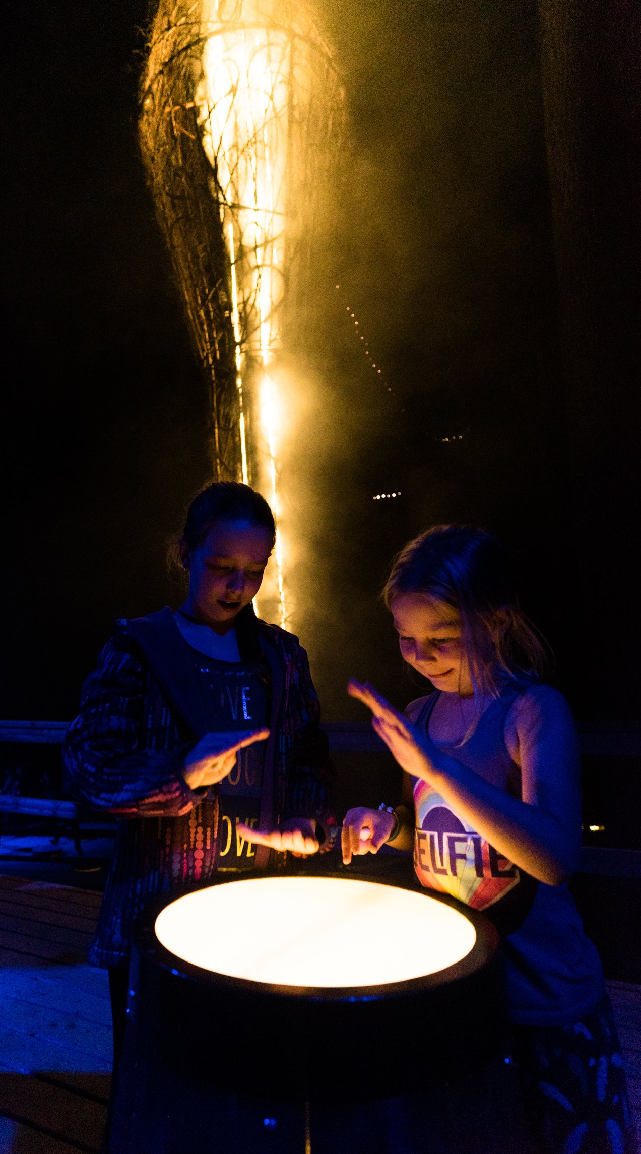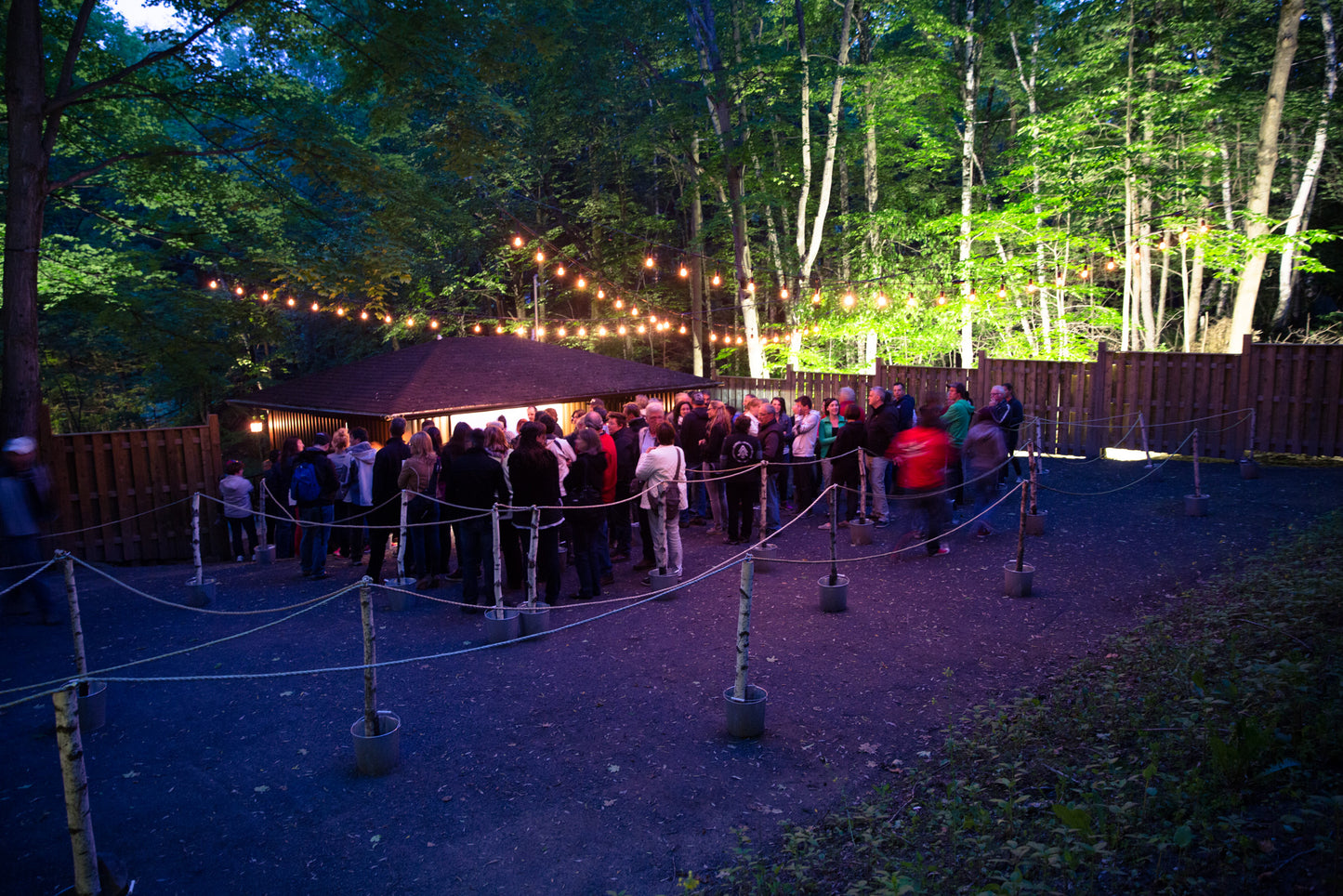 After nightfall in summer, visitors are invited to discover an enchanted trail winding 2 km through the woods. As they walk through the mysterious forest, visitors meet characters inspired by the area’s myths and legends, who draw them into an immersive adventure.