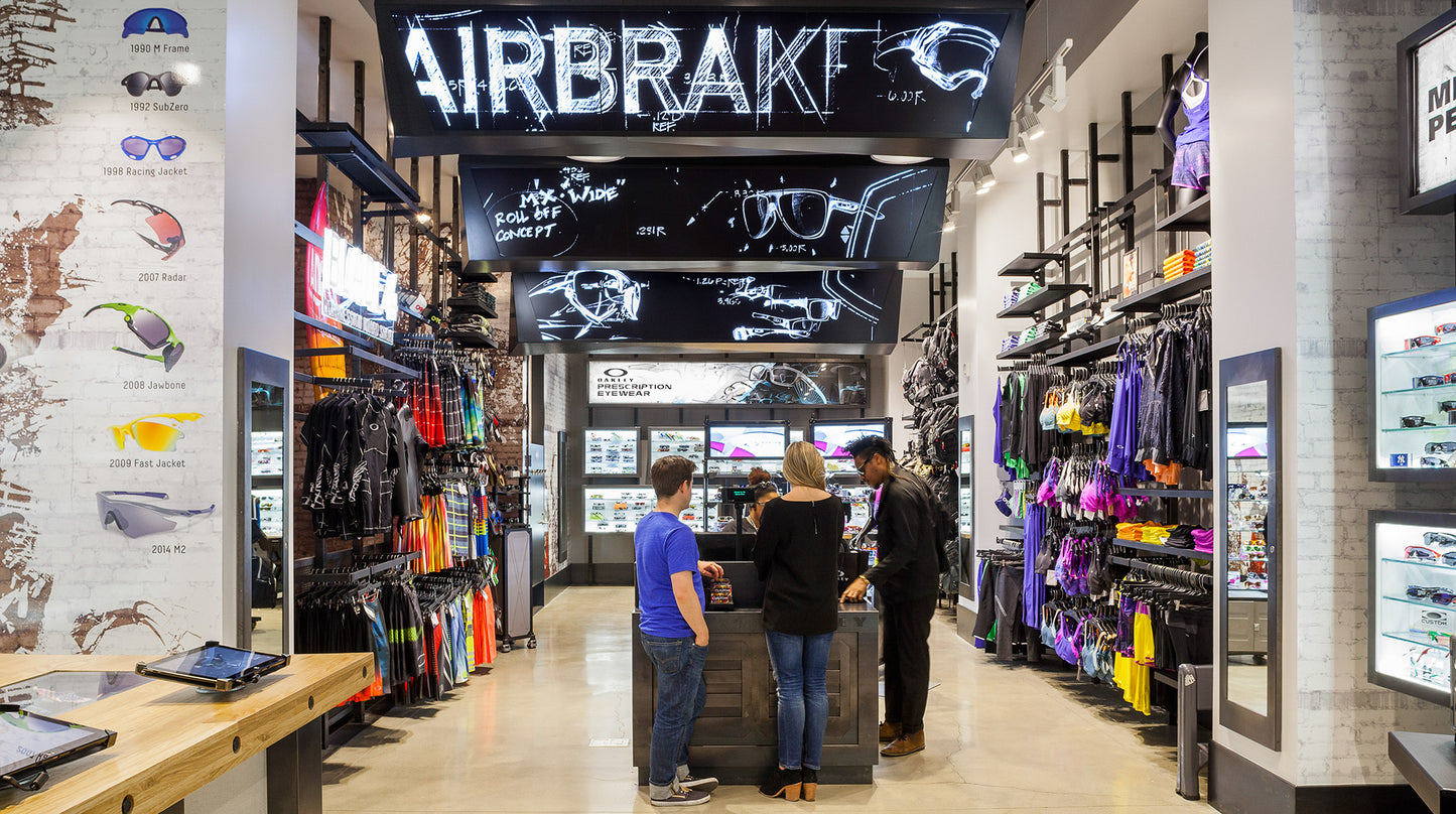 Earlier in 2014, we helped Oakley launch their new brand direction, “Disruptive by Design,” which focuses on the company’s innovative approach to sports technology. We created a living, breathing, participatory installation that introduced guests to the renegade spirit powering Oakley’s brand. To get even more mileage out of this rebranding partnership, Oakley asked us to design a permanent installation for their new flagship store on 5th Avenue in New York City.