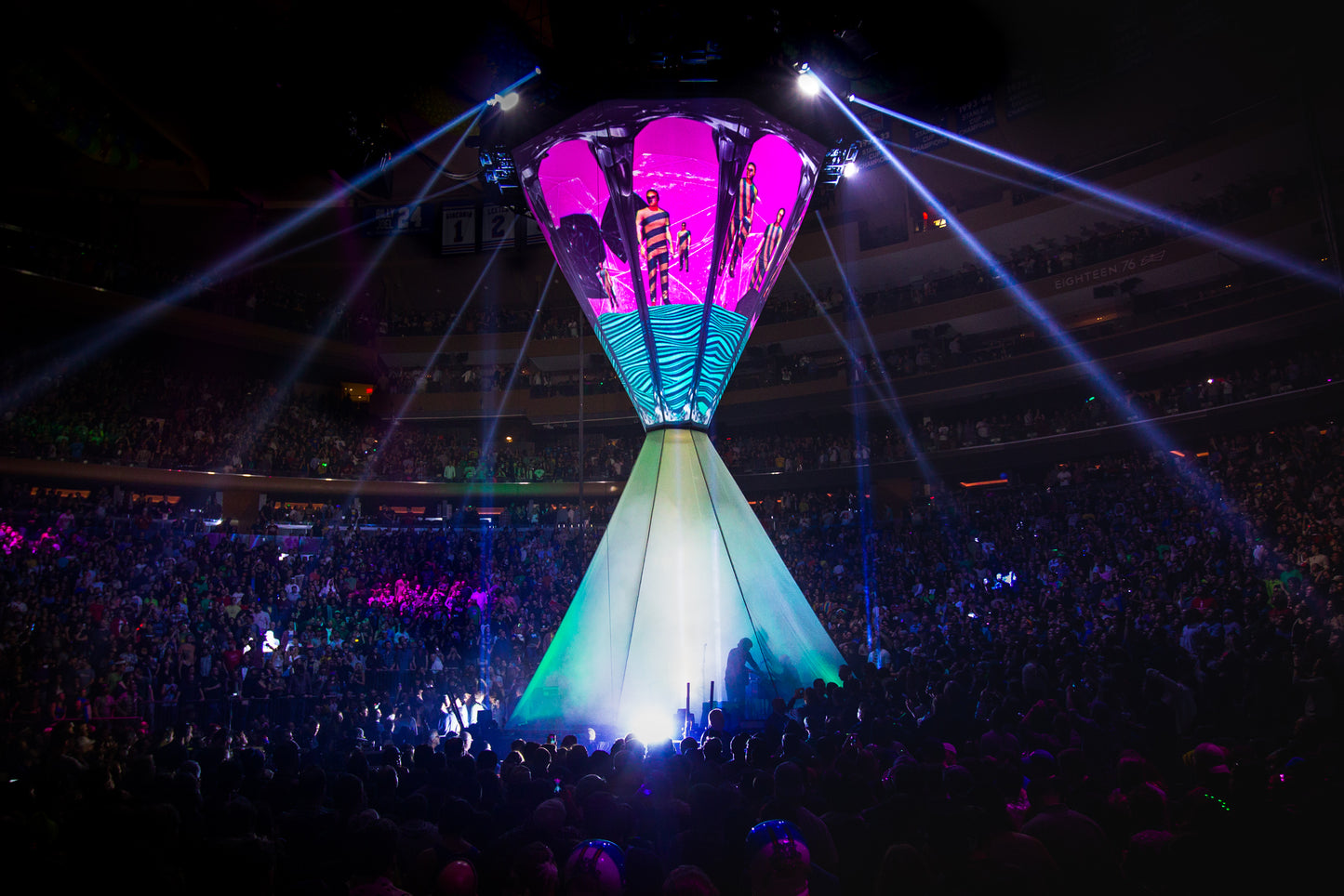 As the last moments of 2015 trickled away, the countdown began. Smoke filled the hourglass and, to the fans’ amazement, the band reappeared on the main stage at the stroke of midnight. Madison Square Garden was transformed into a vivid color fantasy. Fans were elated. 2016 had well and truly landed.